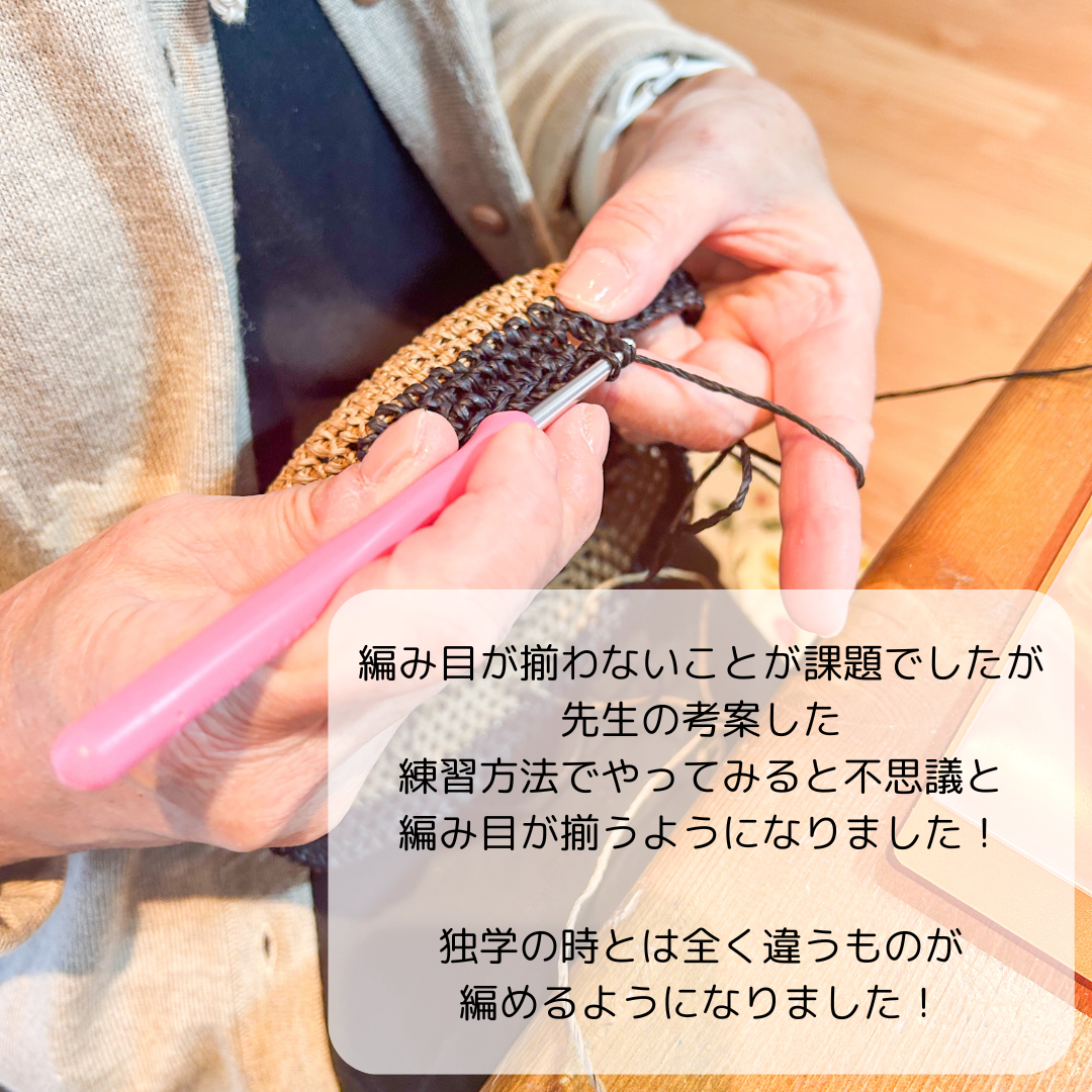 綺麗に編めないなど、編み方のお悩みがすぐに解決できるご指導をしています。